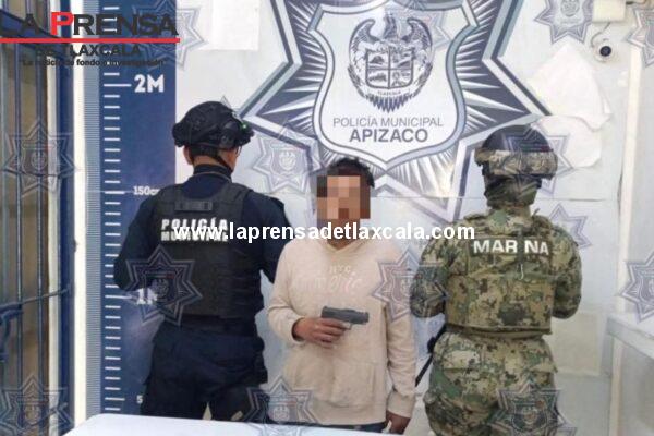 Derivado de un reporte emitido por el Centro de Control y Comando (C2), elementos de la Dirección de Seguridad Pública, Vialidad y Transporte de Apizaco, lograron la detención de un masculino por el delito de posesión de objeto apto para agredir (réplica de arma de fuego), sobre Blvd. Francisco I. Madero, La Ciénega. El masculino,…