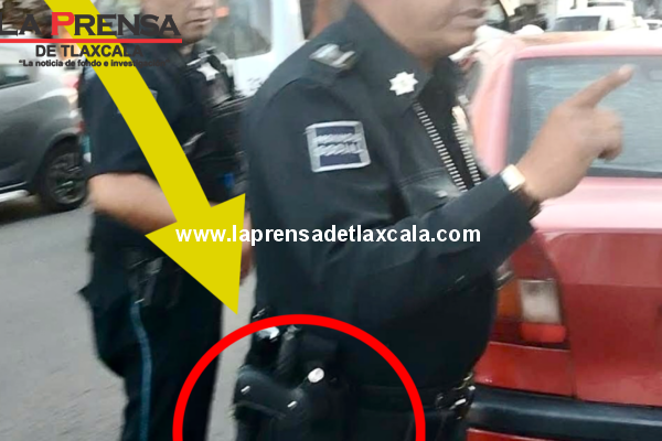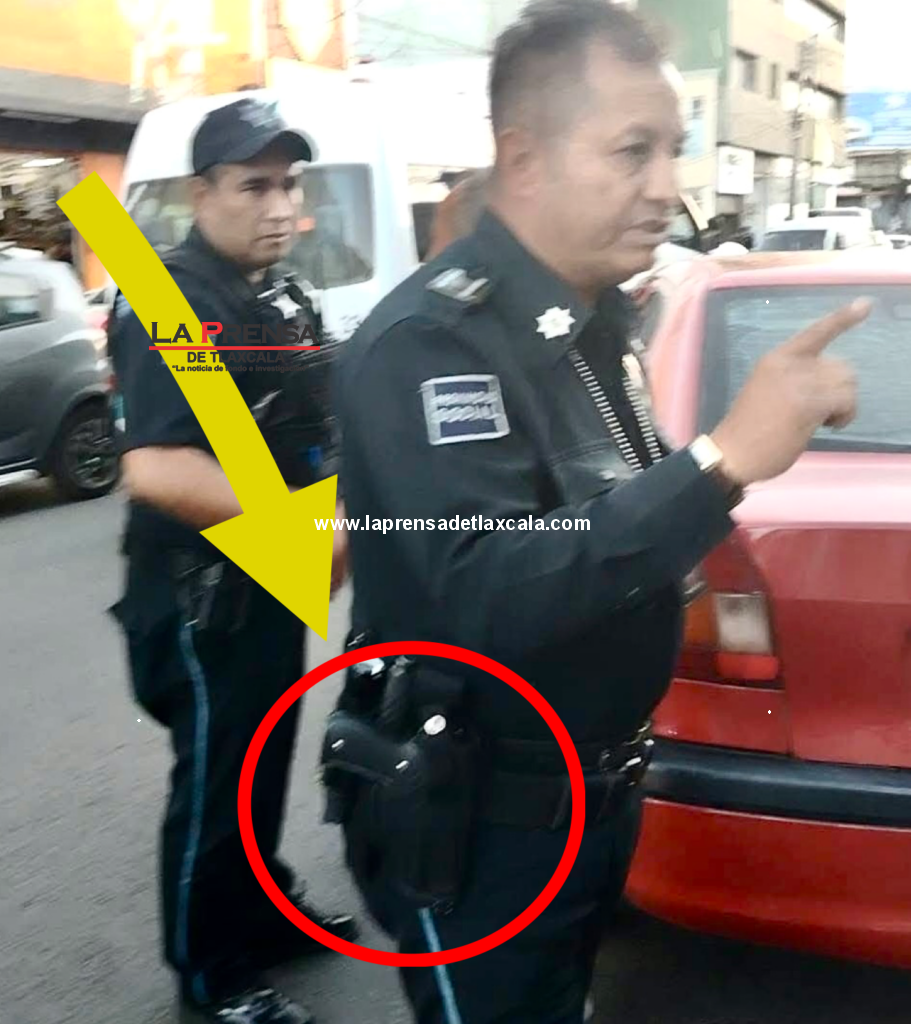 Policía sin licencia colectiva ni controles de confianza porta arma y uniforme en Apizaco; acusan usurpación de funciones