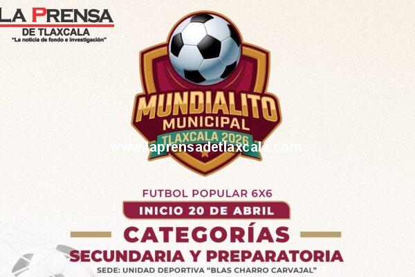 _Se invita a estudiantes y público en general a participar en cualquiera de sus categorías; los premios serán económicos_ El Ayuntamiento de Tlaxcala, encabezado por el alcalde Alfonso Sánchez García, emitió dos convocatorias para el torneo de futbol popular 6×6 “Mundialito Municipal” de este 2026, con el objetivo de fomentar la actividad física, la integración…