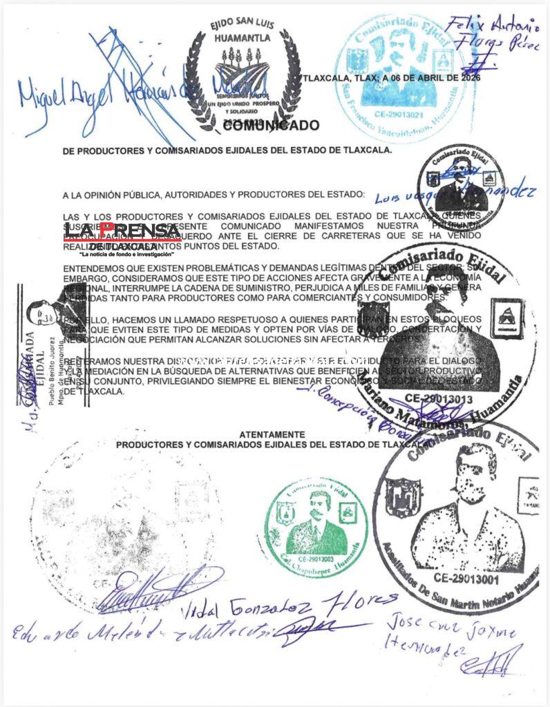 Productores de Tlaxcala rechazan bloqueos carreteros y llaman al diálogo