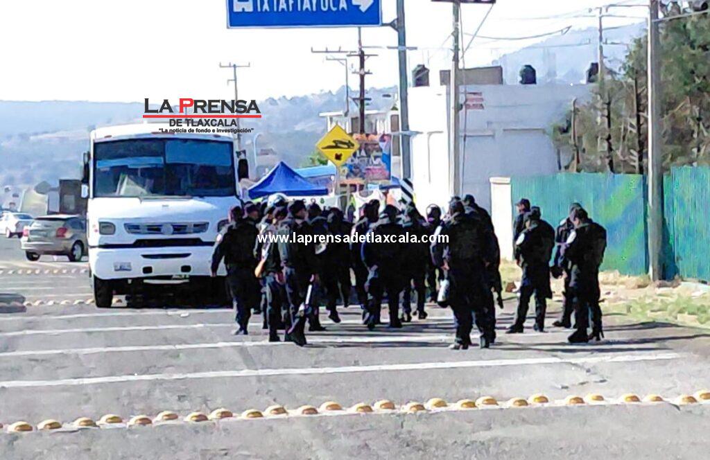 Despliegue policial impide bloqueo de campesinos en la México-Veracruz, zona Nanacamilpa