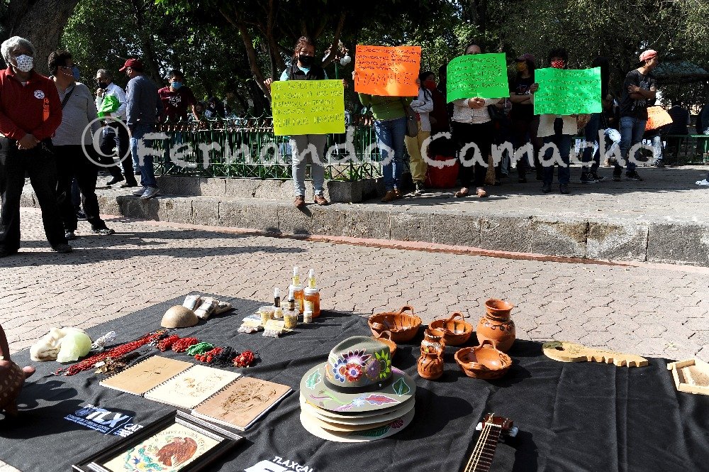 Por su parte, alrededor de 30 artesanos que ofrecen sus creaciones en las principales plazas y espacios de la capital también se ven afectados por esta contingencia por lo que exigiendo fondos de apoyo para sortear la crisis, ya que sus ventas han sido nulas a raíz de la declaratoria de emergencia sanitaria en el estado ya que el ingreso que perciben proviene de las ventas que realizan al día