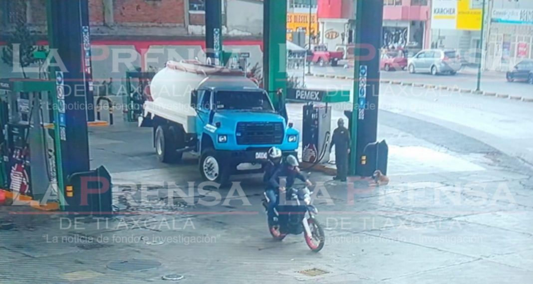 A plena luz del día cuatro sujetos que viajaban a bordo de dos motocicletas asaltaron la gasolinera Vázquez a escasos metros de la maquinita de Apizaco, sin que la policía municipal se percatará de los hechos.
