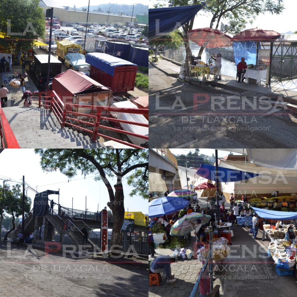 Este sábado a partir de las 9:40 La Prensa de Tlaxcala pudo constatar la ausencia de filtros para la sanitización en al menos 4 accesos al tianguis, concretamente en la parte poniente (por el lado del río zahuapan), a saber: Puente Rojo al inicio de la calle Julián Carrillo, puente >verde<, del lado opuesto de río, puente peatonal donde fluyen grandes masas de compradores, por el vértice de Acxotla del río, y acceso de la calle Sánchez Piedras; a la altura de CFE. Estos son los puntos de entrada del 50% de personas –y familias- que acuden a realizar sus compras y tradicionalmente a degustar alimentos típicos preparados in situ.