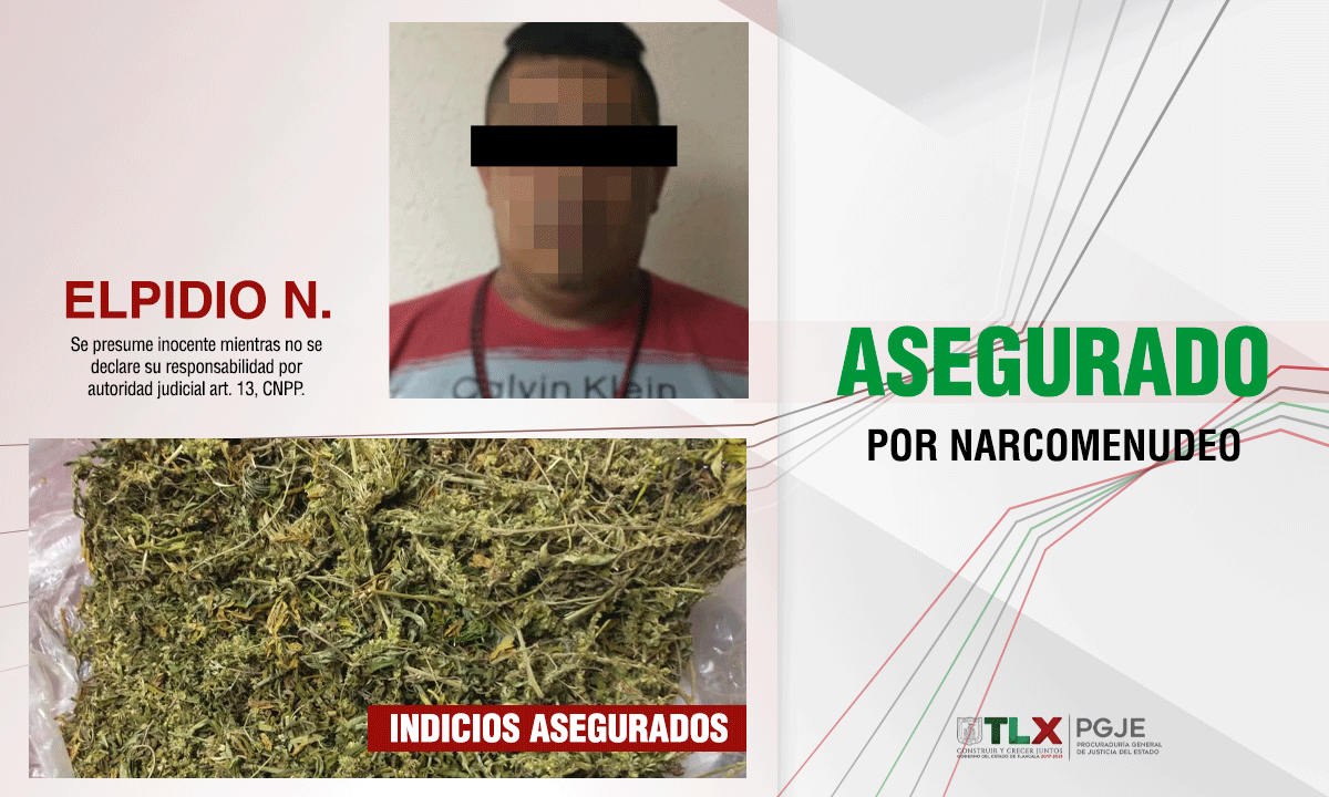 La atención a las denuncias por parte de la Policía de Investigación adscrita a la Procuraduría General de Justicia el Estado (PGJE), permitió la detención de una persona del sexo masculino a quien se le encontró una bolsa con hierba seca, con características propias de la mariguana, por lo que fue asegurado por delitos contra la salud en su modalidad de narcomenudeo.