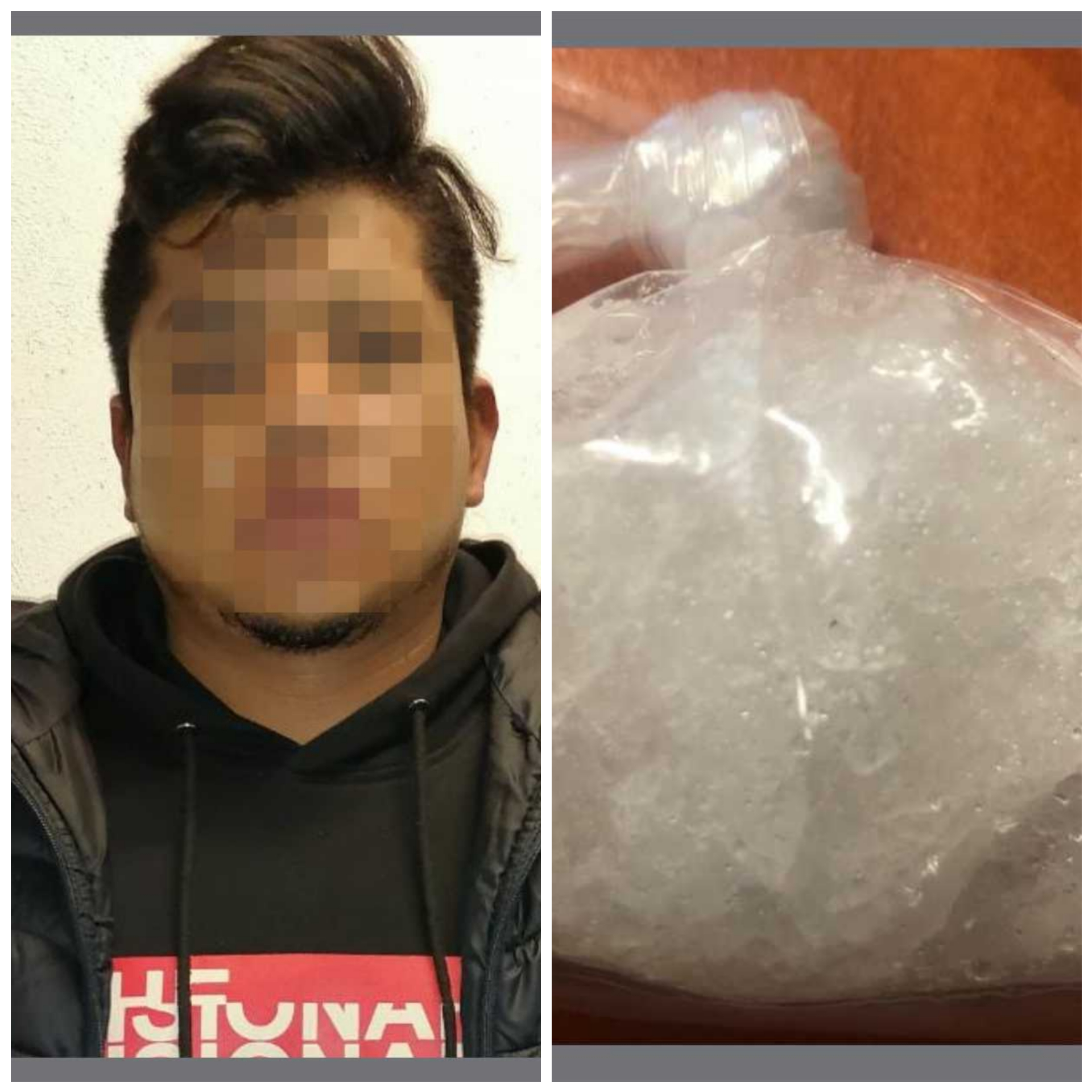 •        El detenido portaba un envoltorio con sustancia solida granulada, características propias de cristal.