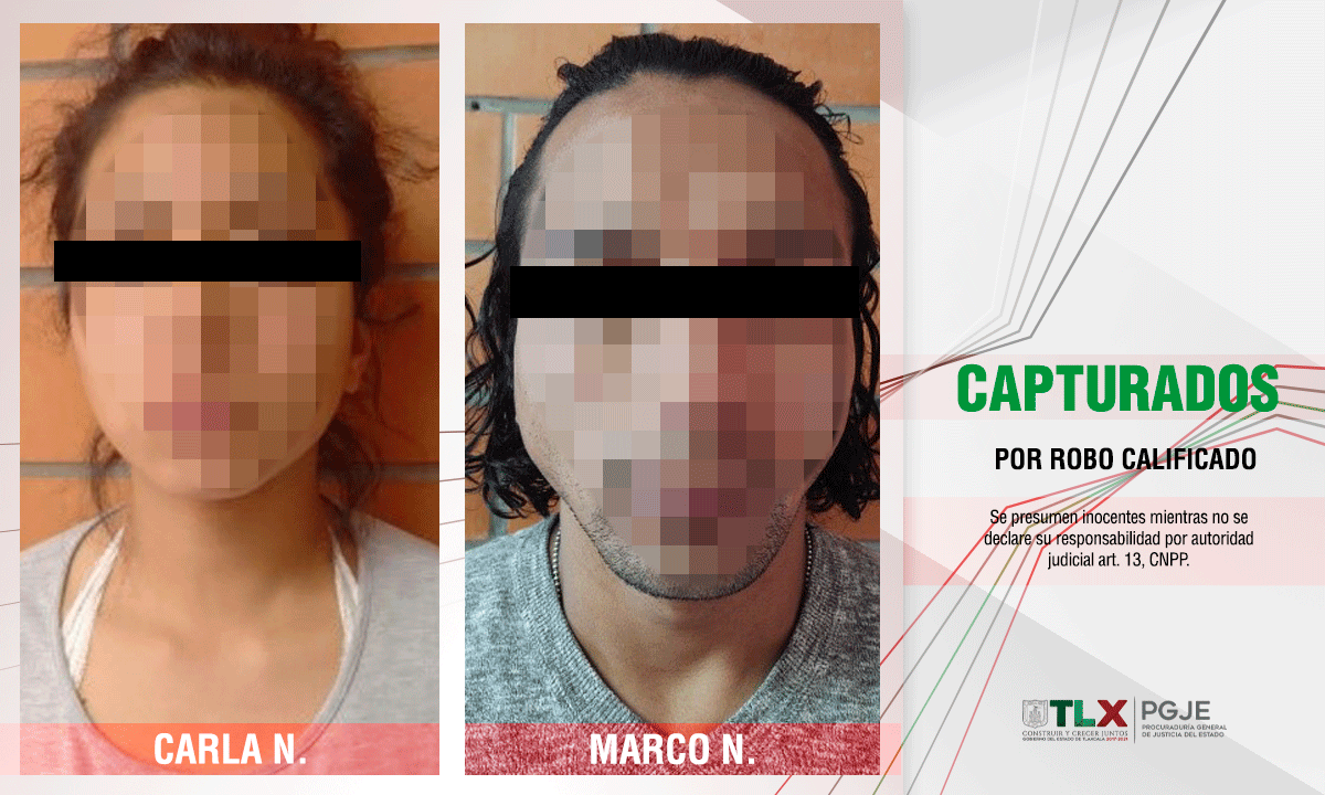 Una vez que fueron puestos a disposición del Agente del Ministerio Público, se documentó que Carla N., de 19 años de edad y Marco N., de 36, probablemente participaron en el robo a la Comisión de Agua Potable y Alcantarillado del municipio de Apizaco (CAPAMA) cometido el 26 de enero del año en curso.