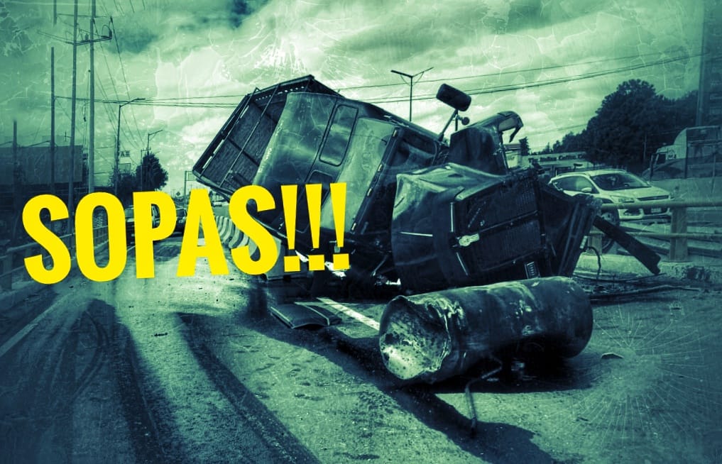 Este domingo en Yauhquemehcan, el avance -de norte a sur- sobre la carretera Tlaxcala-Apizaco del tracto camión color negro enganchado a una jaula del mismo tono que era tripulado por un hombre y su hijo, en la pendiente ascendente del nuevo distribuidor “Xicohtencatl” se vio interrumpido, ya que por posible exceso de velocidad y confianza la pesada unidad colisionó contra el divisor de carriles; provocando que la cabina destrozara y su contenedor quedara a punto de volcar, lo que fue evitado por los triblocks.