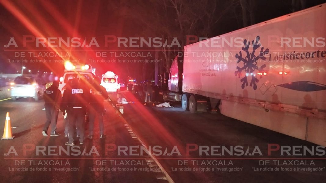 La tarde de este jueves 10 de febrero, a las 19:30 horas, fue reportado al servicio de emergencias 911, que sobre la carretera Mexico-Veracruz, frente a una gasolinera, en la comunidad de San Pedro Tlacotepec, municipio de San Cosme Xaloztoc, se encontraban dos personas tiradas a un costado de un trailer color guinda con caja blanca.