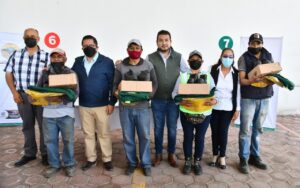 Santos Cedillo entregó a los trabajadores un paquete que tenía par de botas, un overol y un impermeable; y mencionó que su administración buscará poder entregar estos equipos al menos dos veces al año.