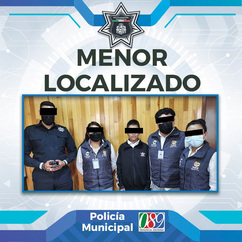 Gracias a la pronta respuesta del personal de la Procuraduría Municipal de la Protección de Niñas, Niños y Adolescentes, así como de la Dirección de Seguridad Pública, Tránsito y Protección Civil de Huamantla, lograron ubicar con buen estado de salud a un menor con ficha de búsqueda ante la Fiscalía Especializada en Personas Desaparecidas y No Localizadas.