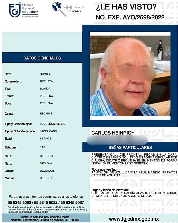 Datos obtenidos por la PRENSA DE TLAXCALA, se sabe que el día siete de agosto de 2022, Carlos Heinrich N., convivió con un hombre y una mujer quienes lo llevaron al Estado de Tlaxcala, lugar donde fue privado de la vida y localizado su cuerpo después de cuatro días de búsqueda en una barranca conocida como “La cañada” , ubicada en la comunidad de San Francisco Temetzontla, municipio de Panotla en el Estado de Tlaxcala.