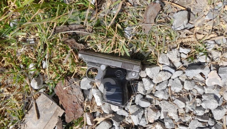 Por lo anterior, los elementos arribaron al lugar para localizar al masculino reportado, pero solo encontraron un arma de fuego tipo escuadra, cargador y tres cartuchos útiles calibre .22mm abandonados; arma presuntamente utilizada por el agresor.