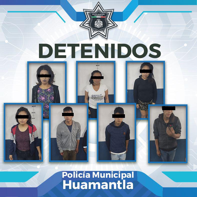 Por ello, personal de la Dirección de Seguridad Pública de Huamantla detuvo a 4 mujeres de entre 20 y 40 años, así como a tres masculinos entre 18 y 25 años de edad, quienes fueron trasladados a Comisaría municipal para ser puestos ante la autoridad correspondiente.