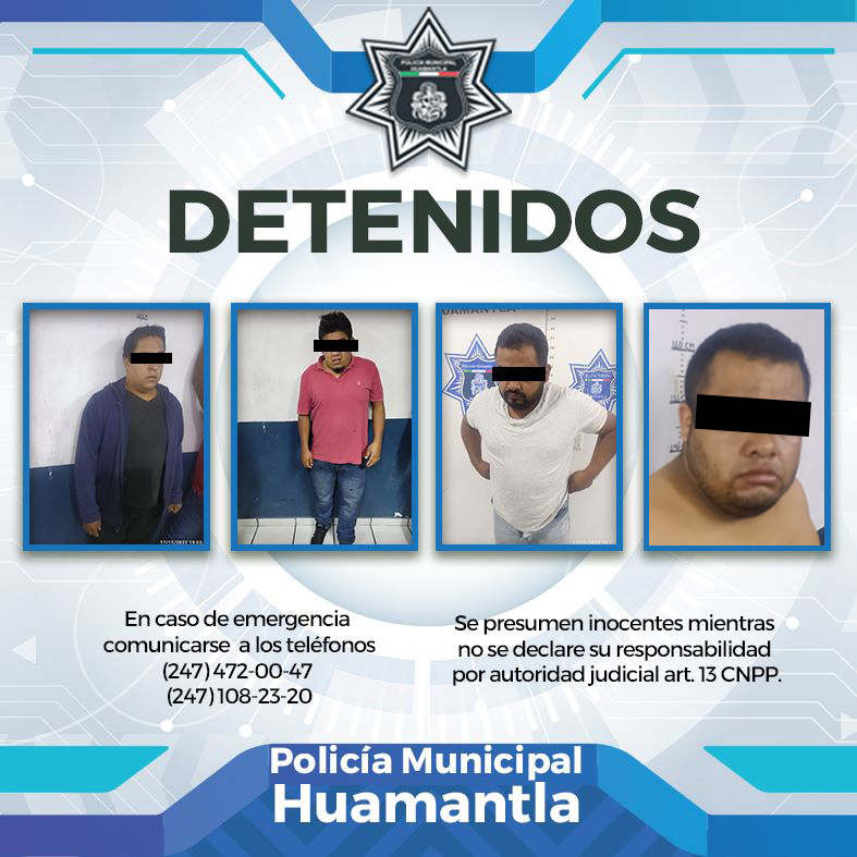 Elementos de Seguridad Pública del municipio de Huamantla, detuvieron a cuatro individuos, quienes además de estar consumiendo bebidas alcohólicas en la vía pública, agredieron a personal de Tránsito municipal mientras brindaban apoyo en un percance vial ocurrido minutos antes.