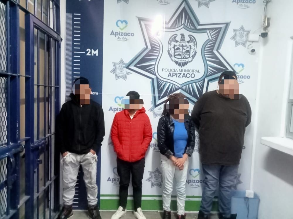 Elementos de la Dirección de Seguridad Pública, Vialidad y Transporte de Apizaco, detuvieron a tres hombres y a una mujer, luego de cometer un robo con violencia al interior de un domicilio en la Avenida Xicohténcatl, de la colonia centro.