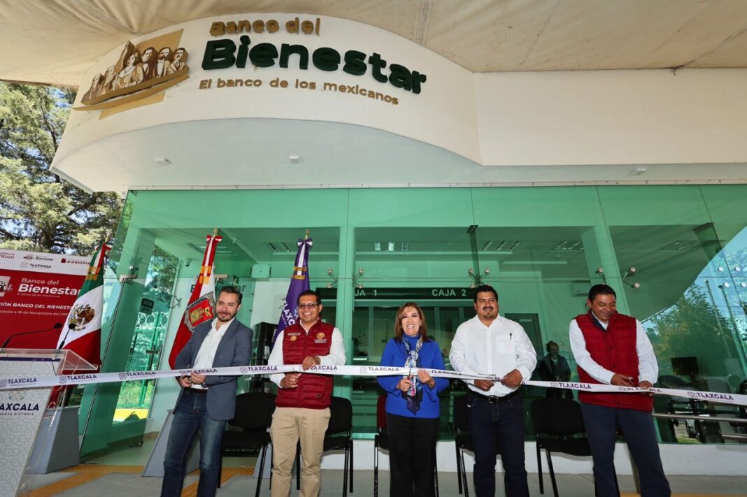 La gobernadora Lorena Cuéllar Cisneros inauguró el Banco del Bienestar en el municipio de Hueyotlipan, que tuvo una inversión de 3 millones 376 mil 378 pesos por obra civil, edificación y equipamiento, el cual se suma a las 69 sucursales que se instalarán en el estado en beneficio principalmente de las y los adultos mayores.