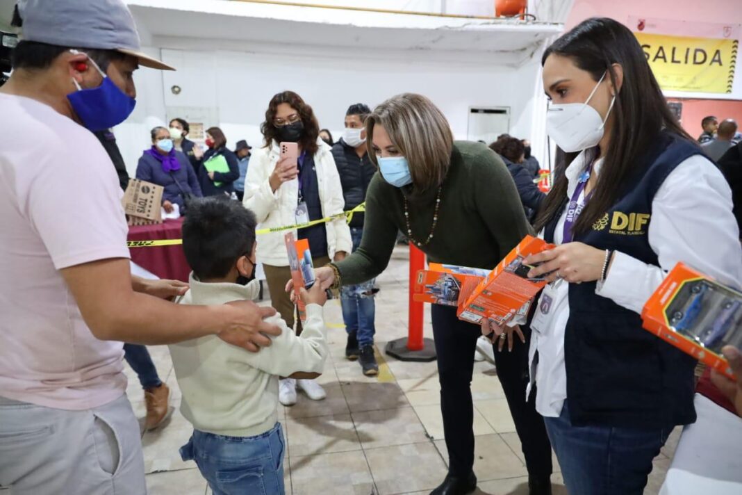 En esta ocasión, cientos de niños recibieron de manos de la presidenta honorifica del DIF estatal, Mariana Espinosa de los Monteros Cuéllar y de la presidenta honorifica del DIF Municipal, Mónica Jiménez Ramírez, juguetes, sorpresas y regalos.