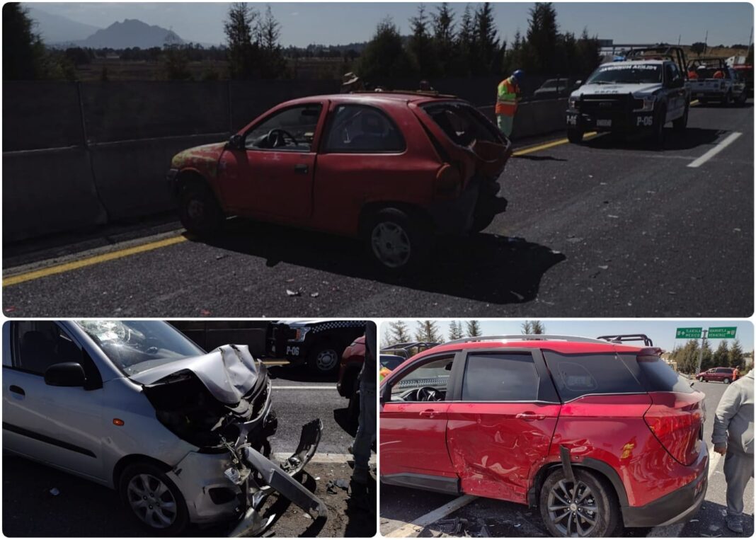 Tres heridos -no graves- de genero y edad distintos, cuantiosos daños materiales así como afectación considerable a la movilidad de la carretera federal México-Veracruz, el saldo que la mañana de este sábado deja entre los municipios tlaxcaltecas de Xaloztoc, Apizaco y Tzompantepec el choque múltiple por alcance; que involucra a tres vehículos particulares,