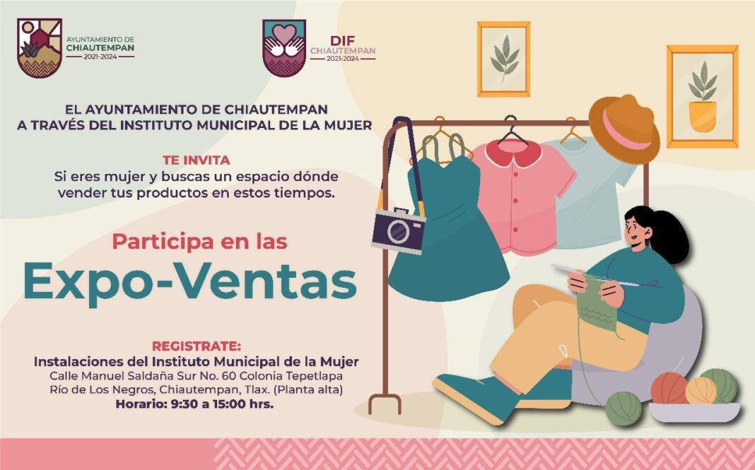 El Ayuntamiento de Chiautempan en coordinación con el Sistema Municipal para el Desarrollo Integral de la Familia (SMDIF) a través del Instituto Municipal de la Mujer, invita a todas las mujeres chiautempenses a participar en las Expo-Ventas, con la finalidad de que puedan exponer de manera gratuita sus productos y así aumentar sus ventas.