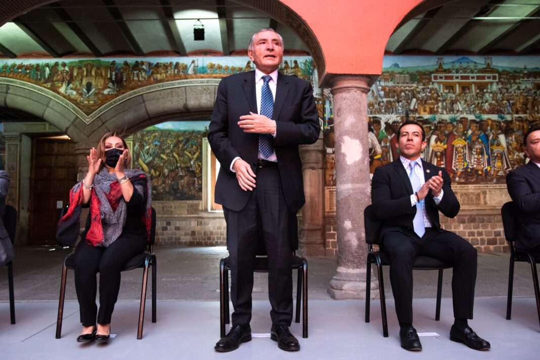 El Patio Central del Palacio de Gobierno fue sede del encuentro denominado “La corresponsabilidad de la Federación, Estados y Municipios en la Construcción de la Paz”, donde el encargado de la política interna del país reconoció a la mandataria estatal como una mujer honesta, íntegra, capaz y profesional, que en poco tiempo logró generar grandes avances en distintos rubros