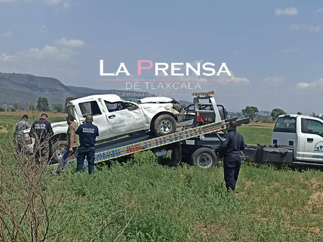 Por lo menos, cinco trabajadores del Ayuntamiento de Texoloc, volcaron esta tarde a bordo de una camioneta en los límites de Texoloc y Panotla.