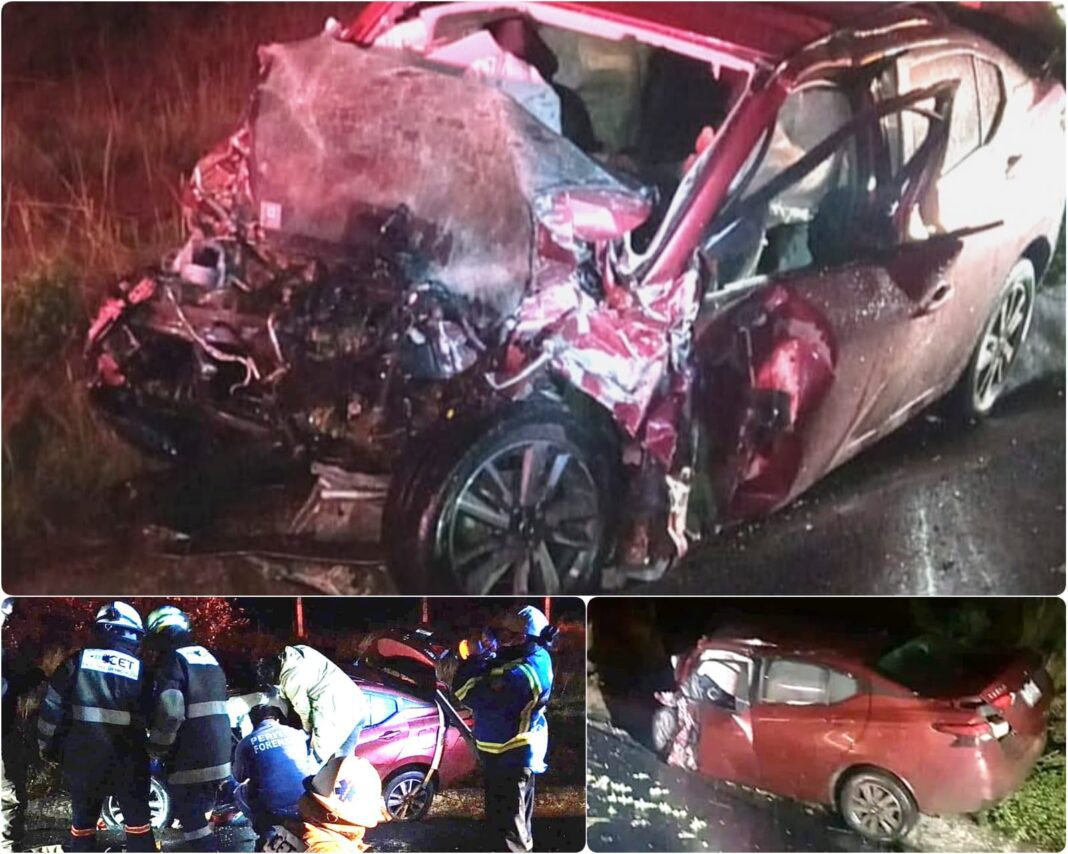 Por ello, al tiempo que era establecido un abanderamiento vial precautorio y el obligado acordonamiento para la preservación de indicios se pidió la presencia de la autoridad procuradora de justicia, de la que su personal tomó conocimiento, procesó la información y posterior a la liberación con equipo libra retiró los cuerpos de la pareja; que se presume iba de viaje por su reciente enlace nupcial en un Nissan Versa con placas de Puebla, lo que será esclarecido durante la investigación en la que hay un conductor y unidad asegurados, probablemente implicados en el hecho culposo.