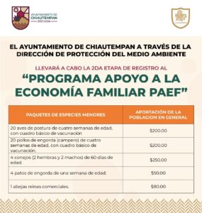 El Ayuntamiento de Chiautempan a través de la Dirección de Medio Ambiente, convocan a la población en general a registrarse en la segunda etapa del Programa de Apoyo a la Economía Familiar (PAEF).