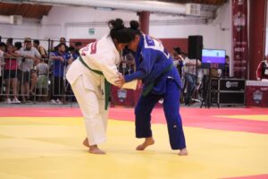 Más tarde, Ariani Espinosa se enfrentó a la veracruzana Lessly Guzmán, quien descolocó a la deportista al realizarle un derribamiento lo que la dejó por debajo del marcador y eso dio un punto a la jarocha.