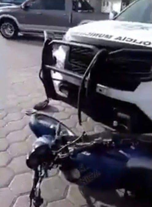 Durante esta mañana, una camioneta radio patrulla, la cual era manejada por un policía municipal de Tlaxco, atropelló a un motociclista en esta demarcación.