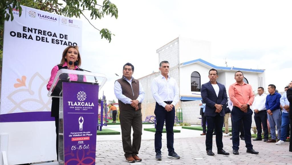 La gobernadora Lorena Cuéllar Cisneros entregó a vecinos del barrio de Xochicalco, municipio de Zacatelco, un nuevo espacio recreativo que consta de un gimnasio al aire libre y juegos infantiles, con lo que se fomenta la unión familiar y la sana convivencia.