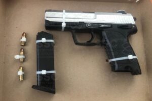 Como indicios, se anexaron un arma de fuego marca HK USP y de calibre 9mmx19, la cual estaba abastecida con dos cartuchos marca FC 9mm. y uno más marca S&B 9×19. Al igual fue puesto a disposición una bolsa transparente con sustancia de características a la droga conocida como “cristal”.