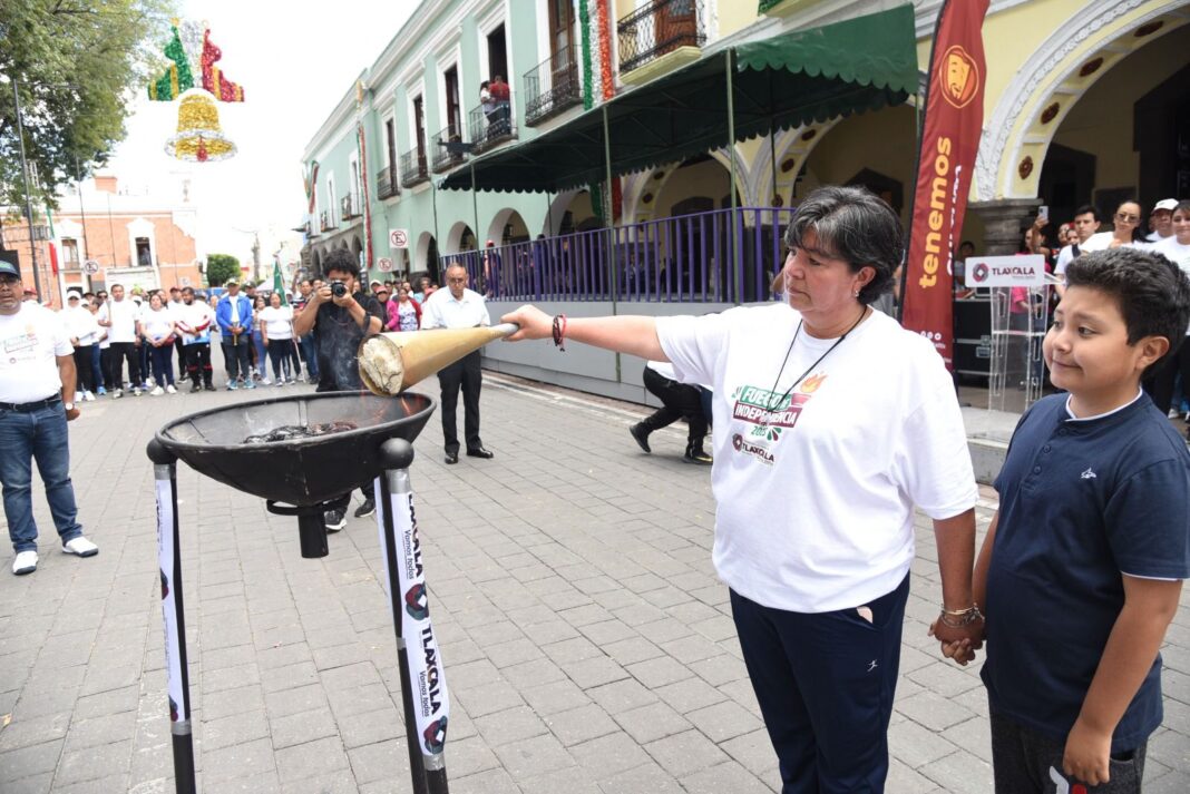 La presidenta municipal de Tlaxcala, Maribel Pérez Arenas, entregó el Fuego Simbólico de Independencia a las y los representantes de las 11 presidencias de comunidad y siete delegaciones, en el marco del 213 aniversario del inicio de la Independencia de México.