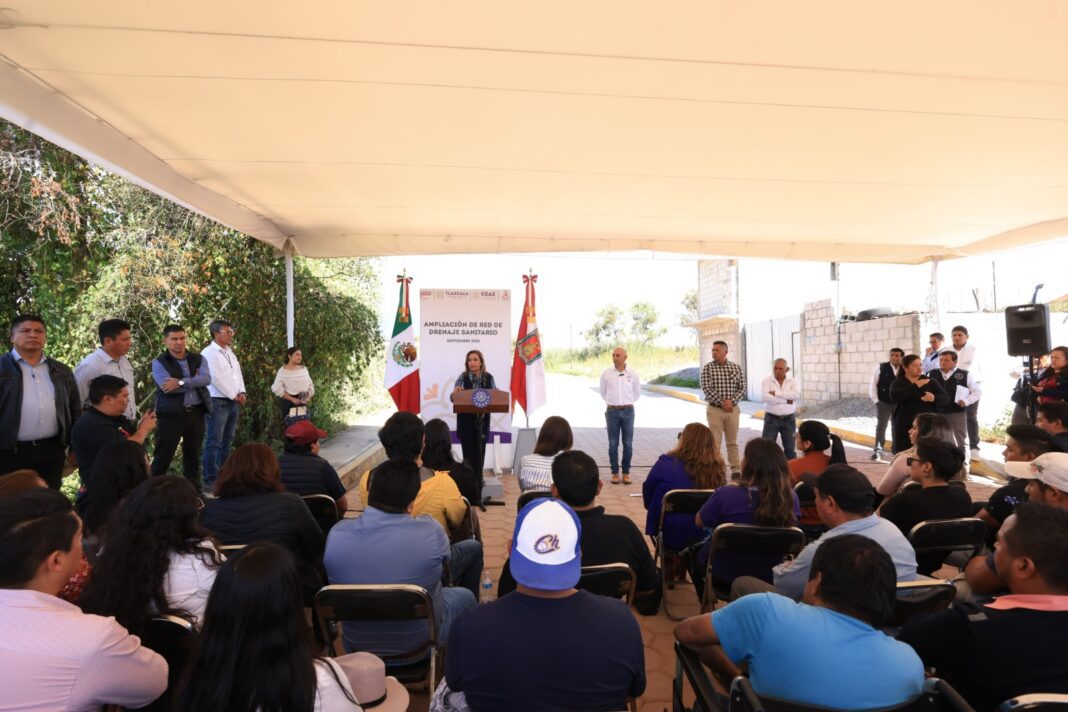 La gobernadora Lorena Cuéllar Cisneros entregó la ampliación de red de drenaje sanitario en la comunidad de Olextla de Juárez, municipio de Acuamanala y una bomba tipo sumergible para el pozo 2 de la comunidad de San Marcos Contla, de Papalotla, con lo cual se ven beneficiados mil 450 habitantes.