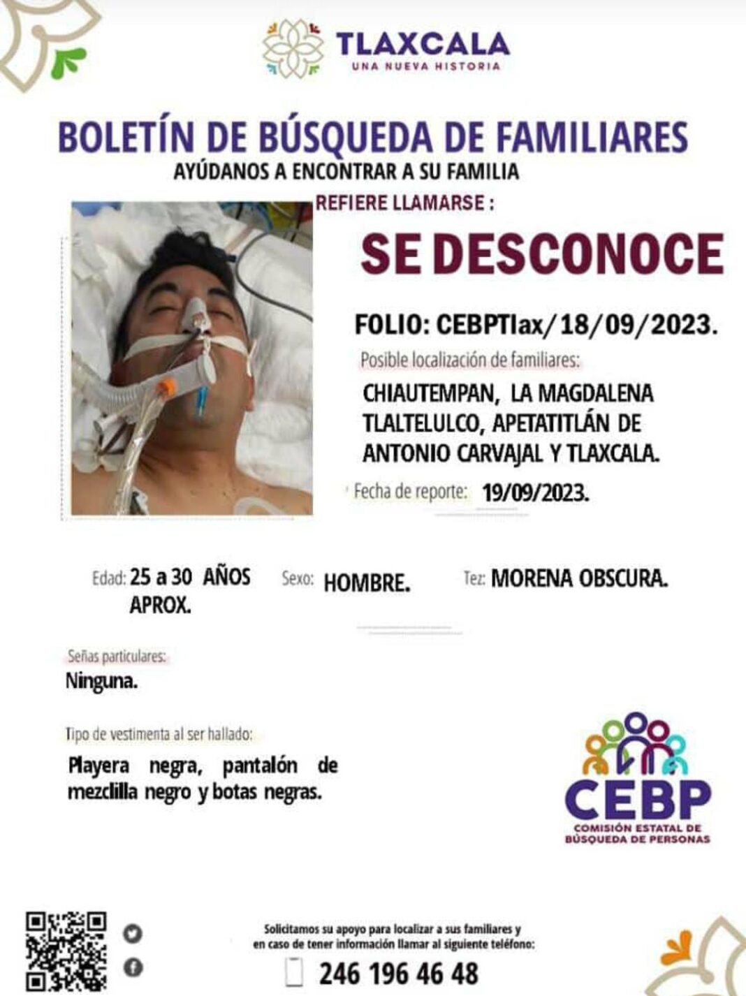 En tanto, al pasar de las horas, personal de trabajo social del nosocomio comenzó con la búsqueda de los familiares ya que se encuentra en calidad desconocido.