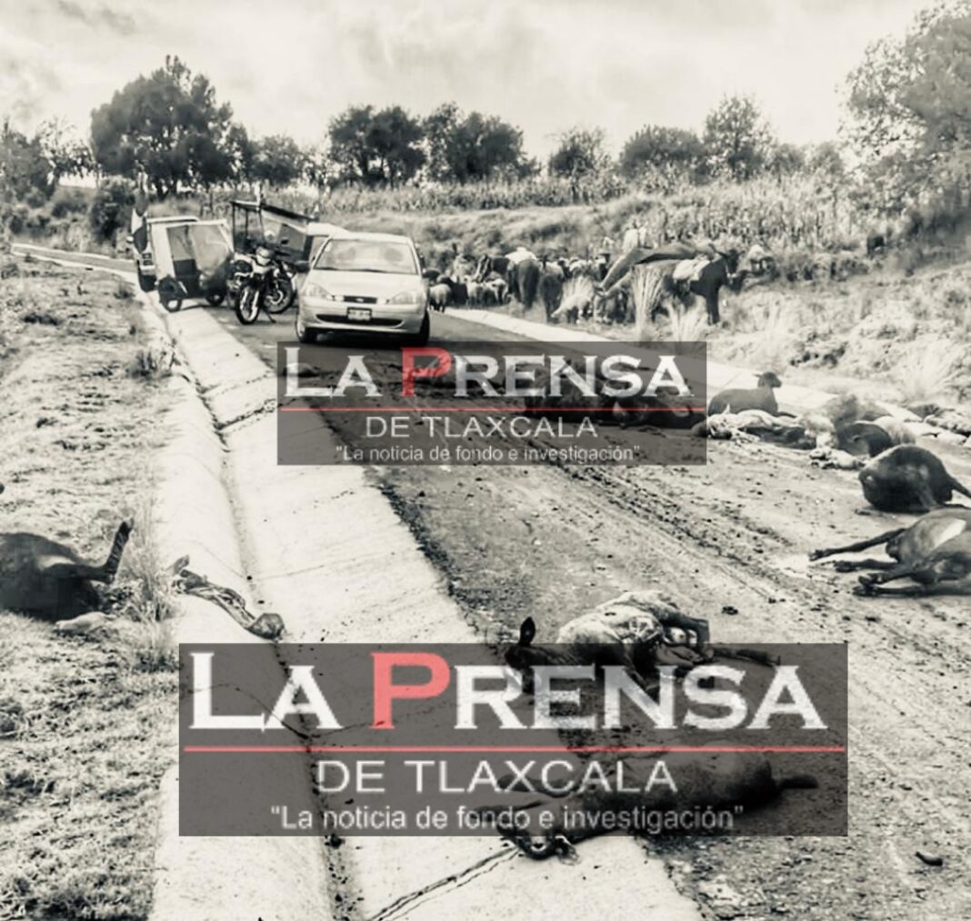 Por lo anterior los arrolló, dejando por lo menos, 10 ovejas sin vida en el sitio y una vaca con lesiones de consideración.