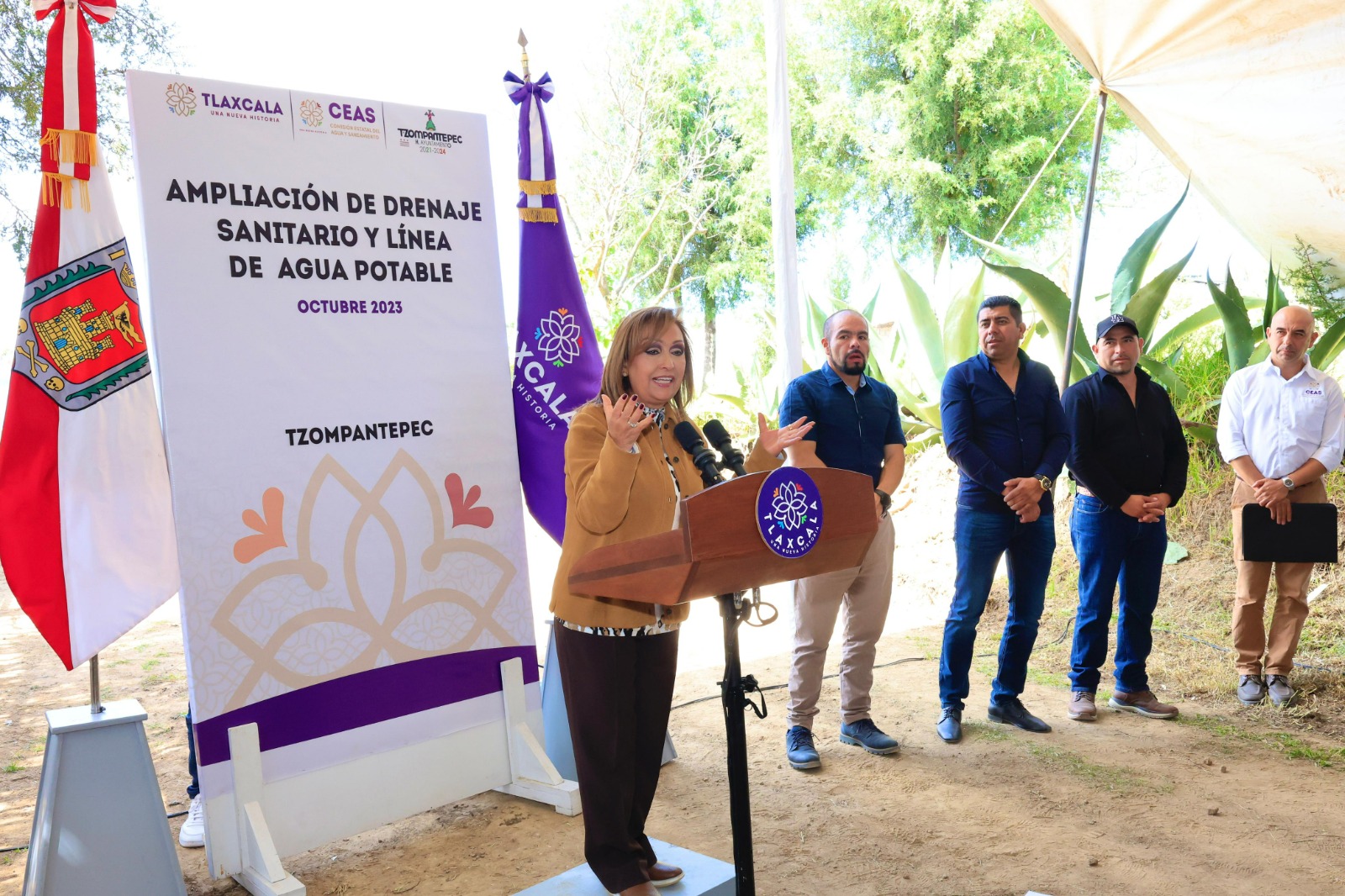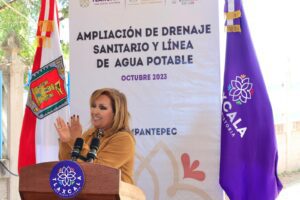 La gobernadora Lorena Cuéllar Cisneros, acompañada de autoridades de la Comisión Estatal de Agua y Saneamiento (CEAS), entregó la ampliación de drenaje sanitario y línea de agua potable en la comunidad de San Juan Quetzalcoapan, en el municipio de Tzompantepec, en beneficio de mil 354 habitantes, la obra realizada tuvo una inversión estatal cercana a los 400 mil pesos.