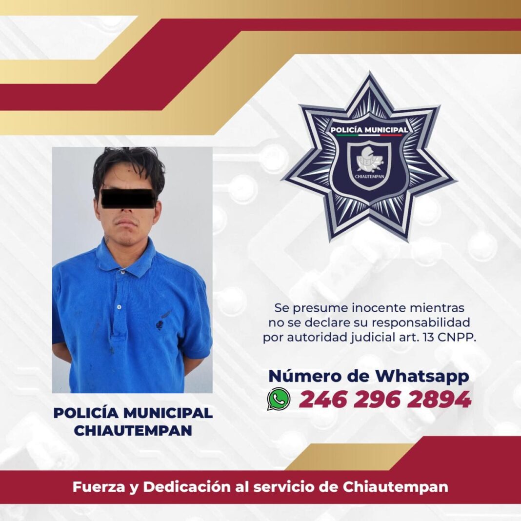 Por estos hechos, los elementos policiales procedieron a la legal detención del masculino, identificado como Luis Fernando N., de 25 años de edad.