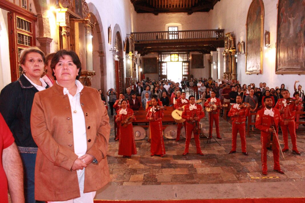 Esta mañana, en el atrio de la Catedral de Nuestra Señora de la Asunción, resonaron las notas de “Las Mañanitas” en honor a la ciudad. La presidenta municipal, Maribel Pérez Arenas, disfrutó del repertorio musical del mariachi junto al párroco Cesar Delgado, invitados especiales, miembros del Cabildo, empleados del Ayuntamiento y el público que asistió al evento.