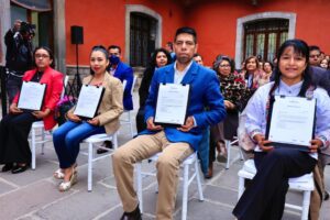 De manos de la gobernadora recibieron su nombramiento los docentes María Eugenia Romero Muñoz, Gabriela Xelhuantzi Hernández, Jorge Corona Pérez e Irene Salazar Fernández.