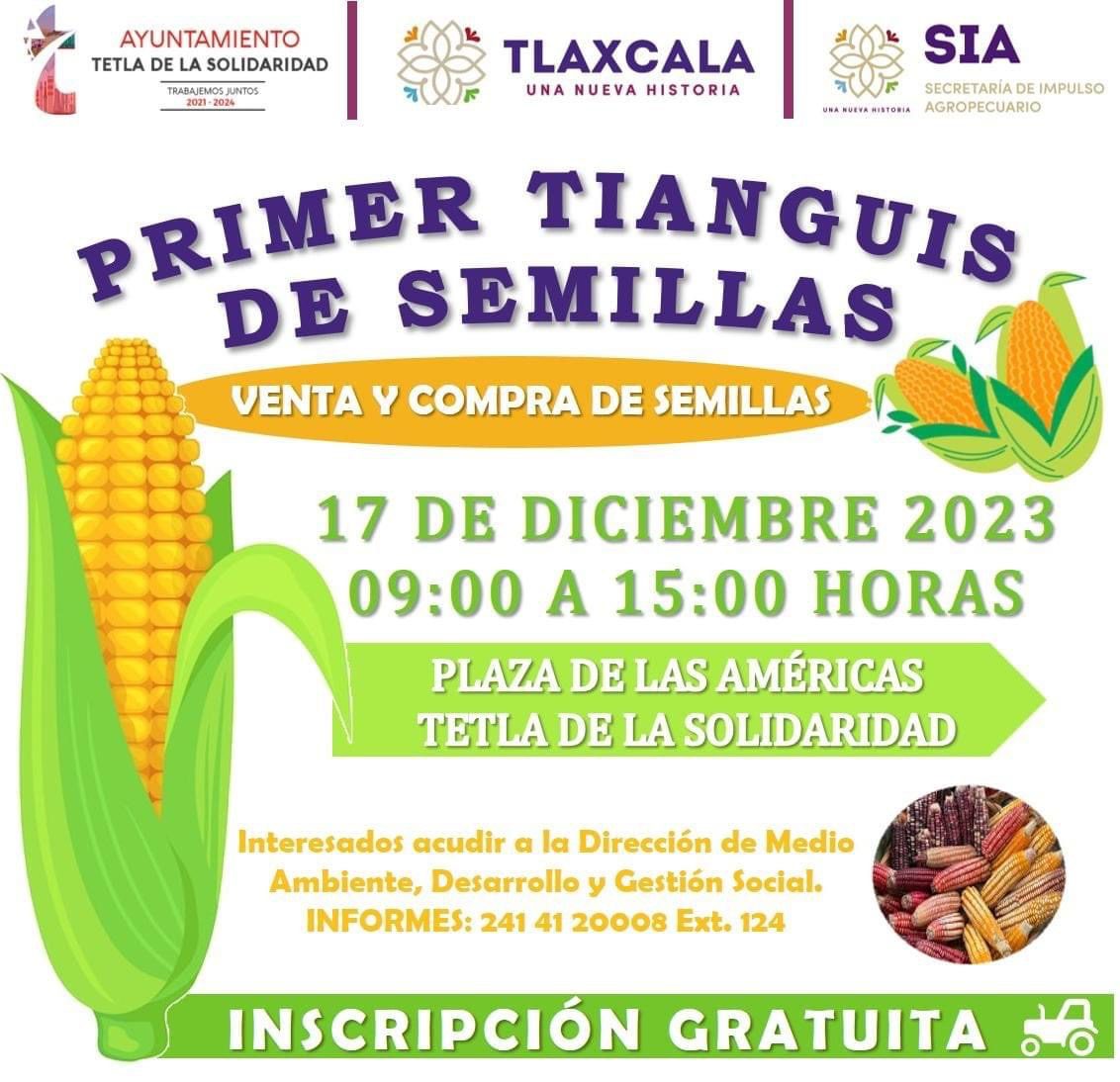 Amigo productor, el presidente municipal de Tetla de la Solidaridad, Andrés Ramírez Galicia reitera, la invitación a participar en el “1er Tianguis de Semilla”, mismo que se realizará el 17 de diciembre de 9 de la mañana a 3 de la tarde.
