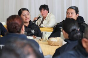 Durante la reunión la presidenta compartió el pan y la sal con los elementos policiacos, con quienes dialogo en cada una de las mesas, donde escucho inquietudes y puntos de vista respecto a la labor cotidiana que se hace en materia de seguridad.