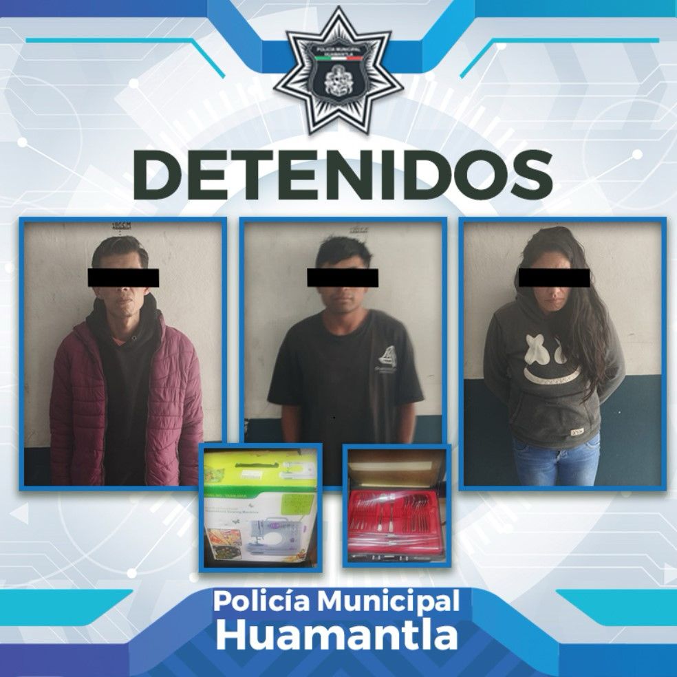 Arresta policía de Huamantla a tres presuntos ladrones de comercio.