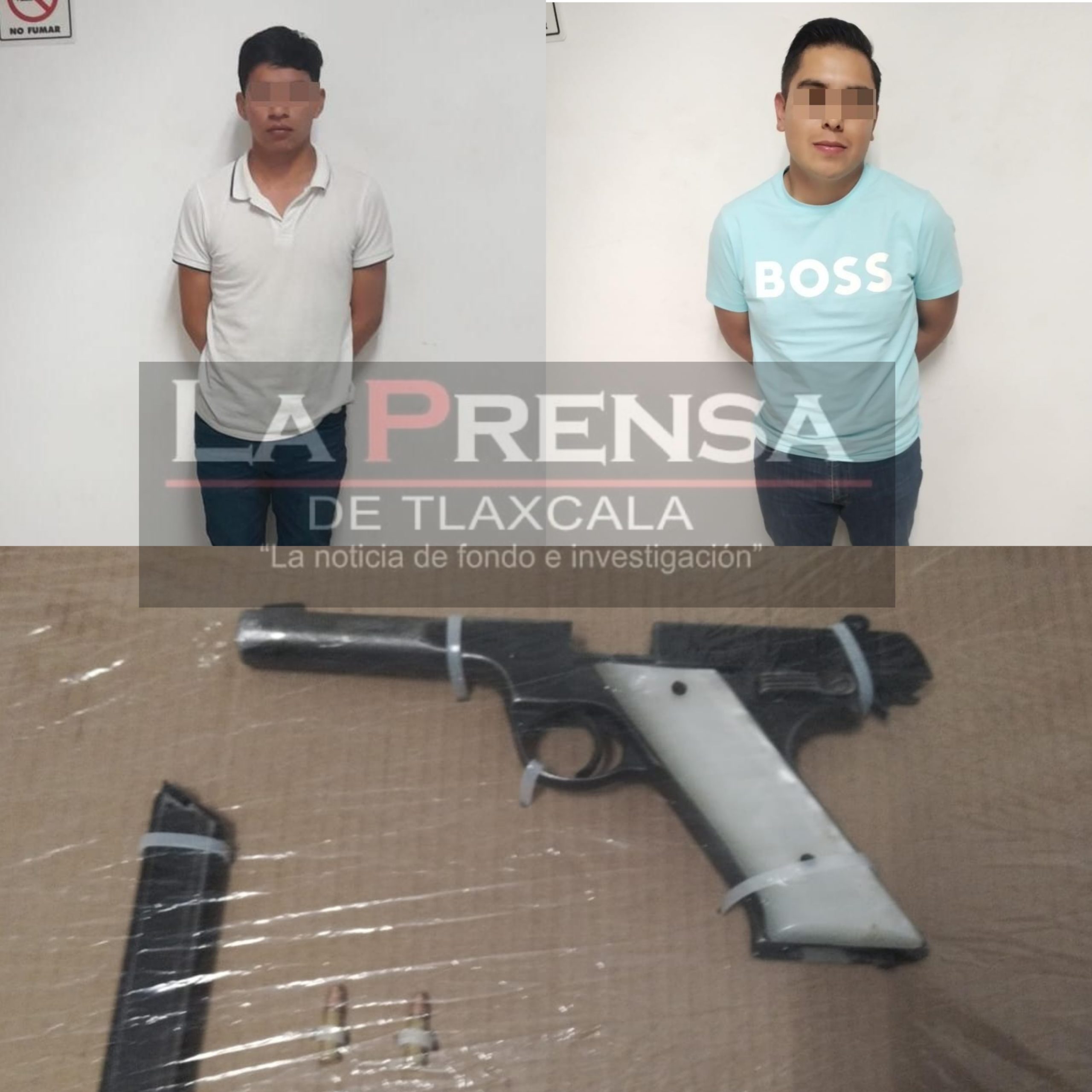 En un operativo coordinado, elementos de la policía municipal de Totolac y policías estatales, lograron detener a dos jóvenes de 20 años en la Candelaria Teotlalpan, a bordo de una camioneta marca Hommer, tipo H-3, con un arma de fuego, tras presuntamente realizar detonaciones.