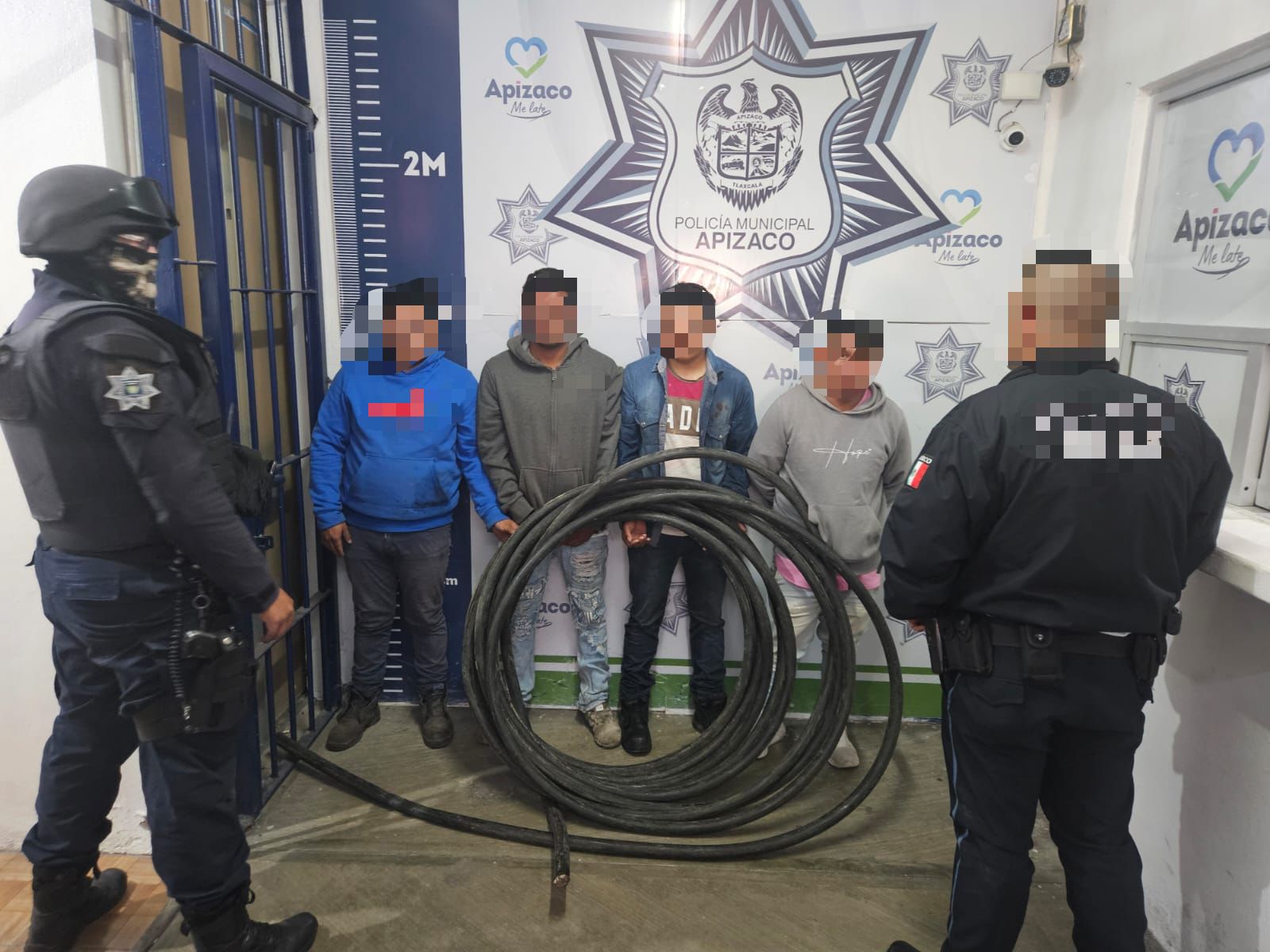 Pablo Badillo, presidente municipal, dio a conocer que la Policía Municipal de Apizaco puso a disposición del Ministerio Público a 4 sujetos por robo de cable telefónico.