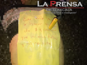 Finalmente, en el sitio fue localizada una cartulina misma que contenía un mensaje que hacía alusión a que el empresario había robado cerca de 4 millones de pesos, sin embargo, esta información no ha sido corroborada y se espera la colaboración interestatal entre las fiscalías de Puebla y Tlaxcala.