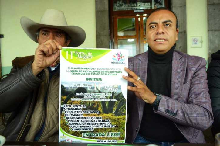 Tlaxcala, Tlax, 21 de octubre de 2024.En los portales grandes de Tlaxcala, se llevó a cabo está mañana, la presentación del 11° Foro del maguey, que se realizará el 26 de octubre en Rancho San Isidro, Nanacamilpa.