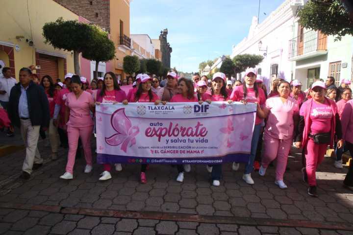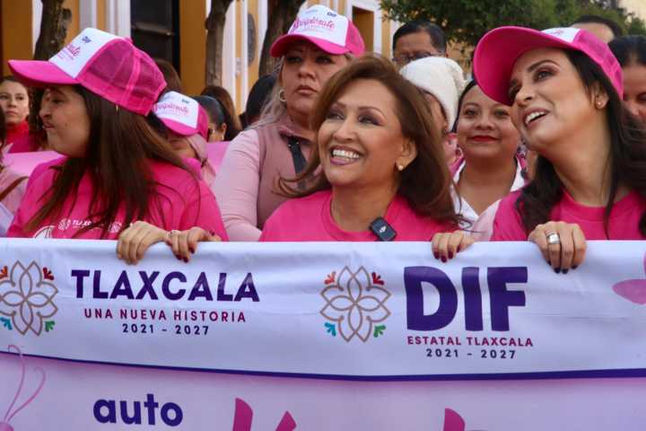 Tlaxcala, Tlax. 22 Octubre 2024. En el marco del Día Internacional de lucha contra el cáncer de mama, la gobernadora Lorena Cuéllar, encabezó la Caminata rosa de sensibilización contra el Cáncer de mama, acompañada de la presidenta del SEDIF estatal, Mariana Espinosa de los Monteros Cuéllar, y demás instituciones de salud y municipales.