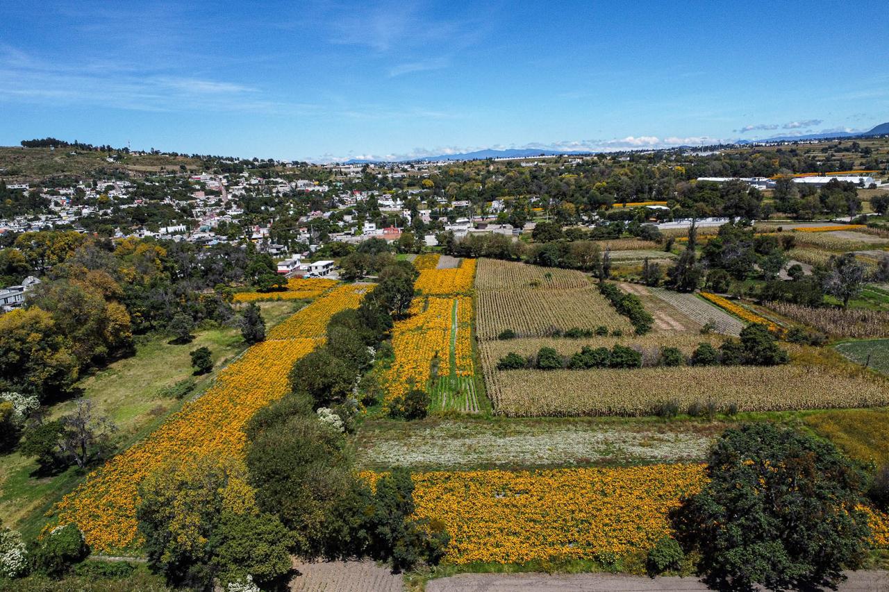 Los campos de Tepeyanco se pintan de naranja con la flor de cempasúchil