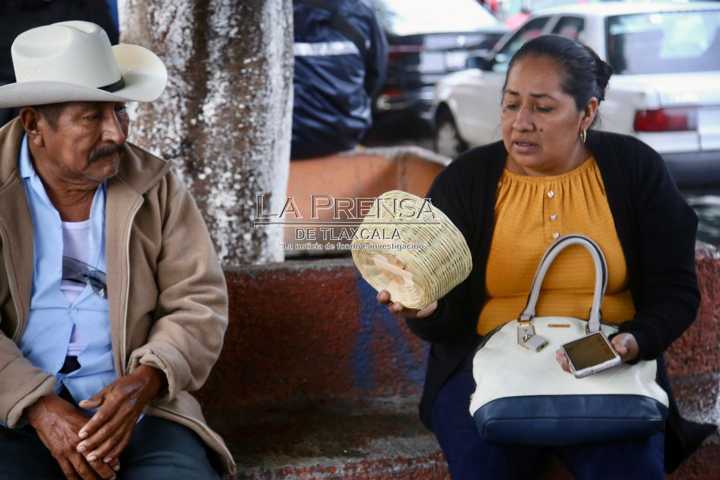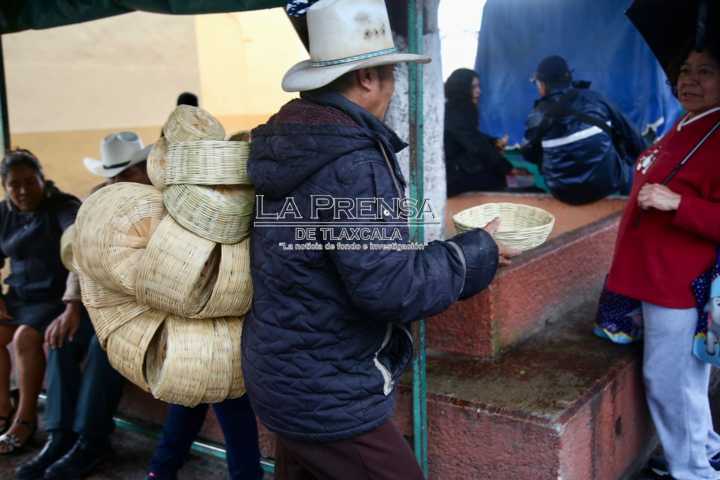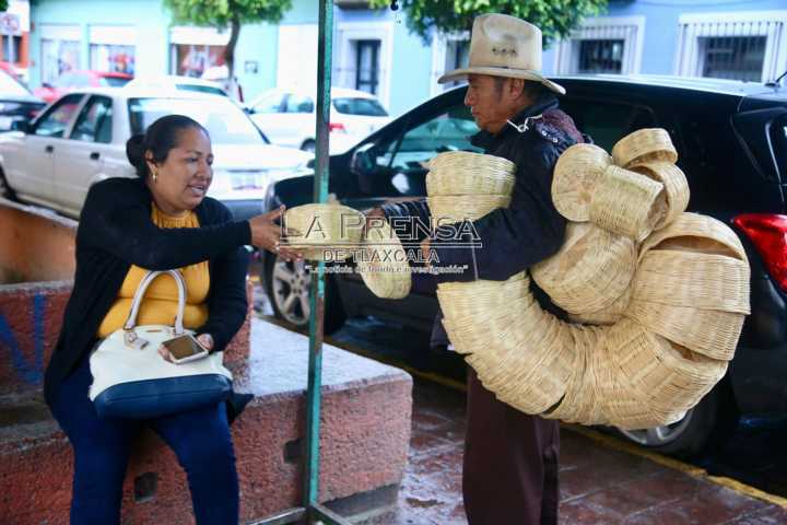 Pese a la lluvia, artesano de cestos vende sus productos en la capital